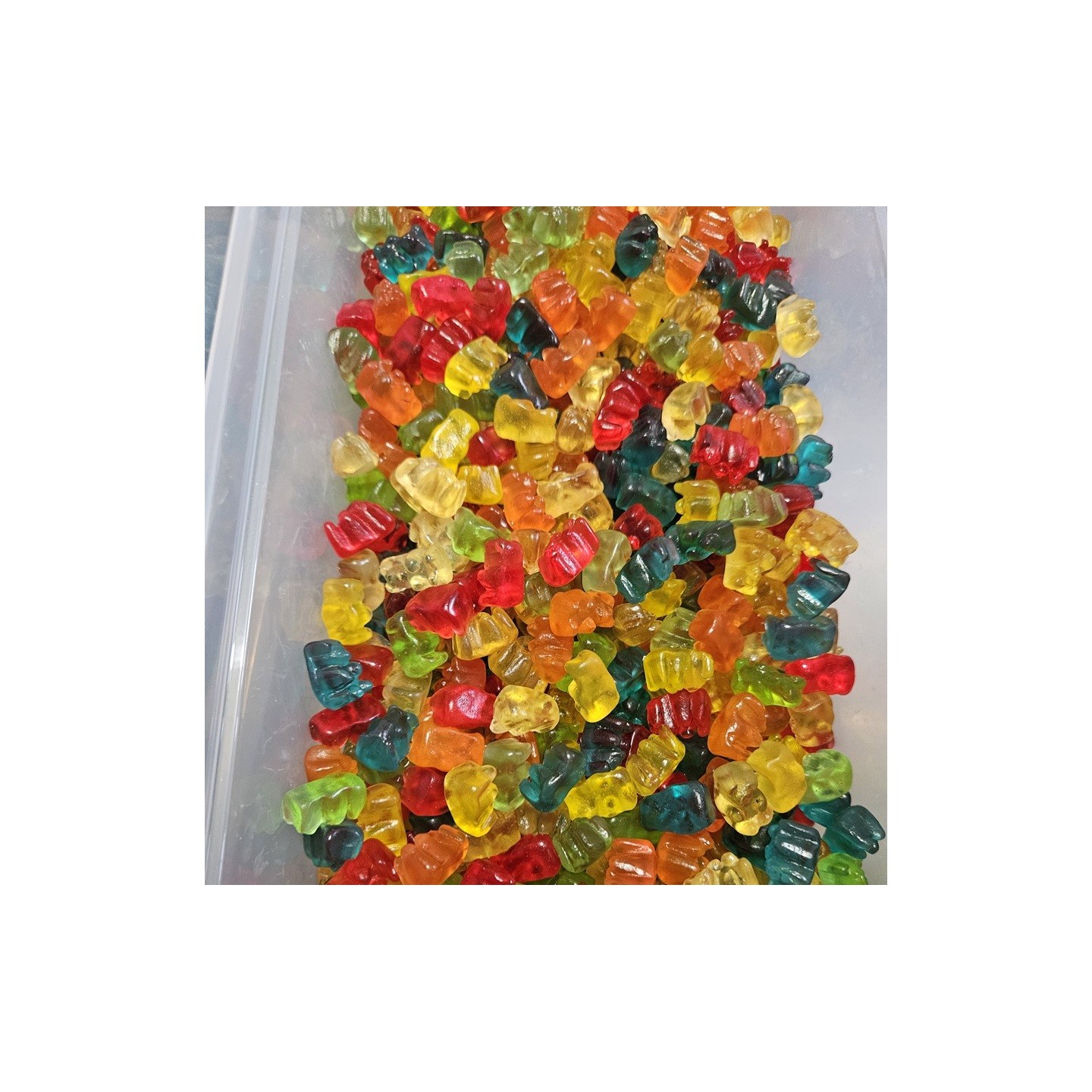 Ingrédients : (sous réserve de modification par le fabricant) Sirop de glucose, eau, sucre, amidon, gélatine de boeuf, acidifiant : acide citrique E330, régulateur d'acidité : citrate de sodium E331, agent d'enrobage : cire de caranuba E903, colorants : E100, E120, E133.