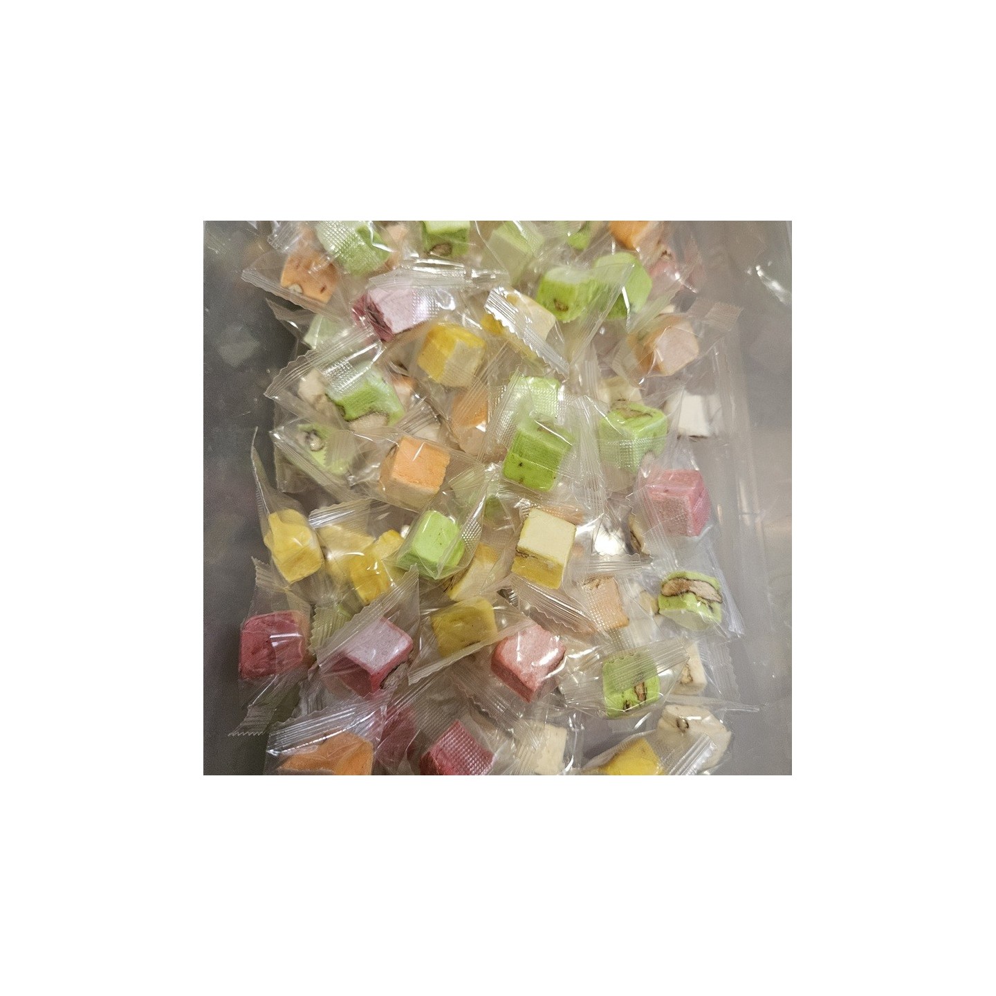 - Ingrédients : (sous réserve de modification par le fabriquant) Sucre, glucose, amandes grillées 15%, vanilline, blanc d'oeuf, miel sucre inversé, pain azyme, (fécule de pomme de terre, eau, huile végétale d'olive) amidon (huile de coco) peut contenir des traces d'autres fruits a coques., arômes : pistache, framboise, huile essentiel d'orange et de citron, colorants : E102, E122, E124, E131.