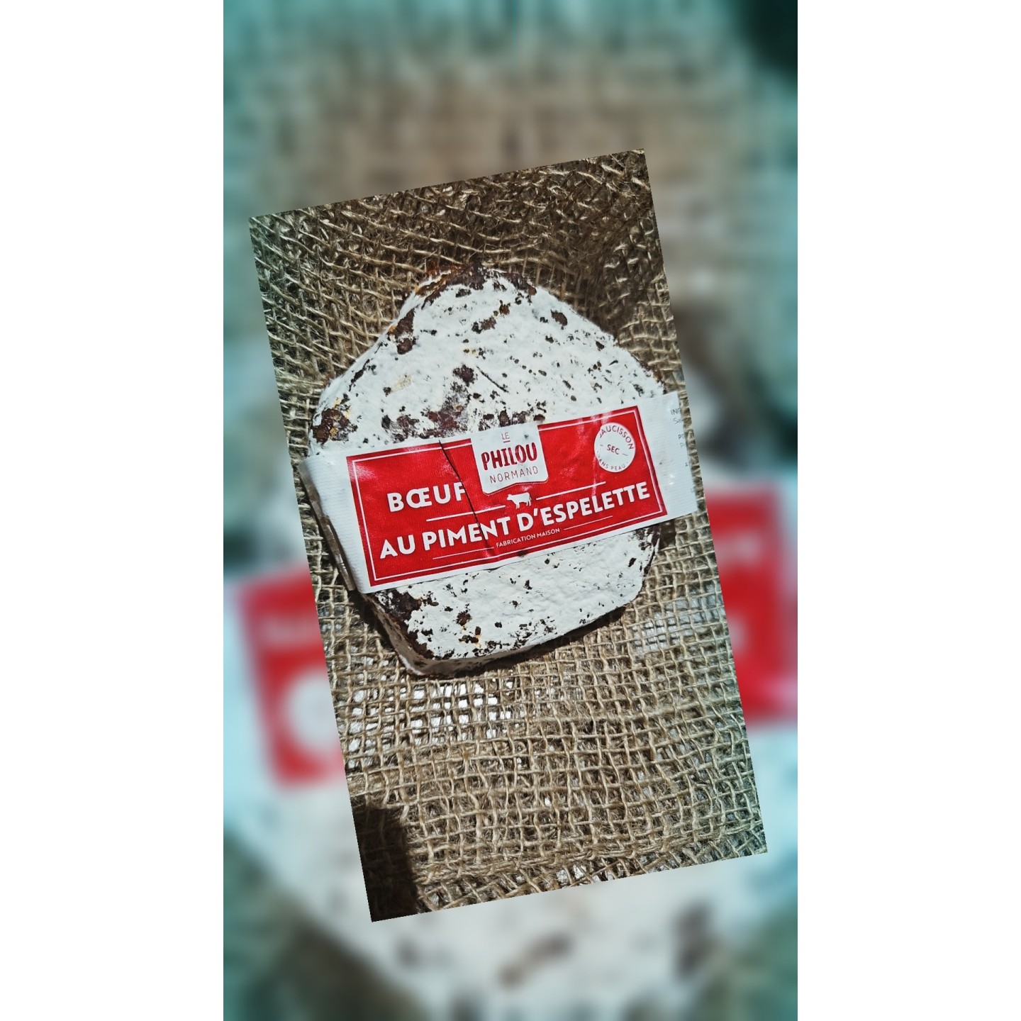 Plongez dans une expérience sensorielle unique avec notre saucisson au bœuf et piment d’Espelette. Confectionné à partir de viande de bœuf français soigneusement sélectionnée, ce saucisson allie la douceur et la tendreté de la viande à la puissance aromatique et légèrement piquante du célèbre piment basque. Chaque étape de sa fabrication, de l’assaisonnement précis au séchage maîtrisé, reflète un savoir-faire artisanal irréprochable.